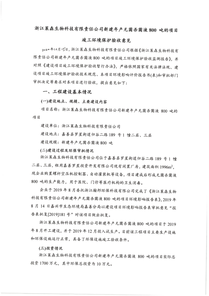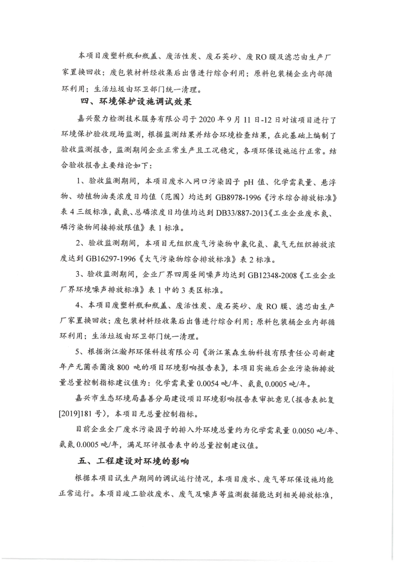 附件下載:浙江萊森生物科技有限責(zé)任公司新建年產(chǎn)無(wú)菌殺菌液 800 噸的項(xiàng)目竣工環(huán)境保護(hù) 驗(yàn)收監(jiān)測(cè)報(bào)告