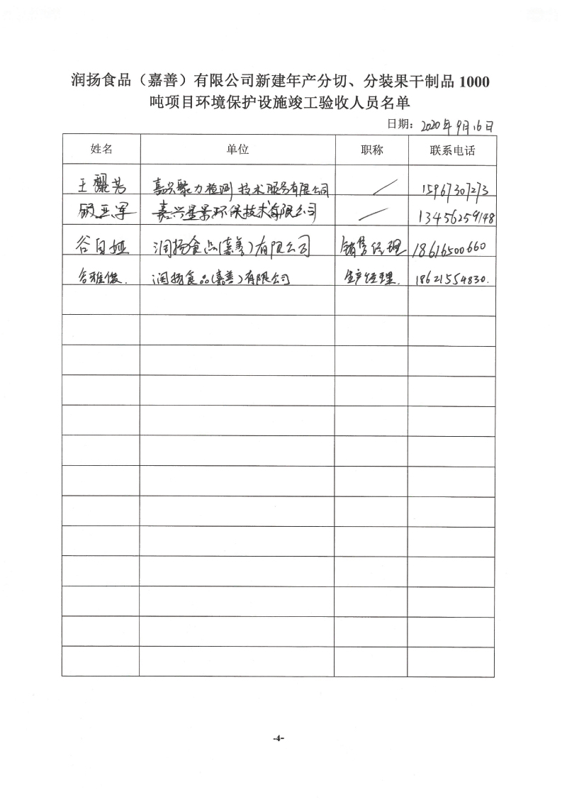 附件下載:潤揚食品(嘉善)有限公司新建年產(chǎn)分切、分裝果干制品1000噸項目竣工環(huán)境保護驗收監(jiān)測報告