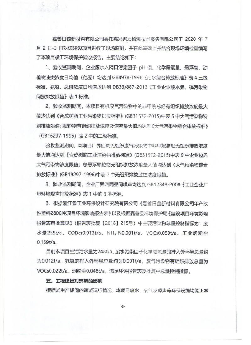 上篇: 嘉善日鑫新材料有限公司年產(chǎn)改性塑料2800噸項目竣工環(huán)境保護固廢驗收意見