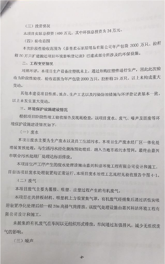 嘉善柔石家具用品有限公司年產包袋2000萬只、拉桿箱50萬只擴建搬遷項目階段性驗收報告.pdf