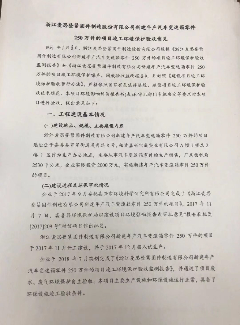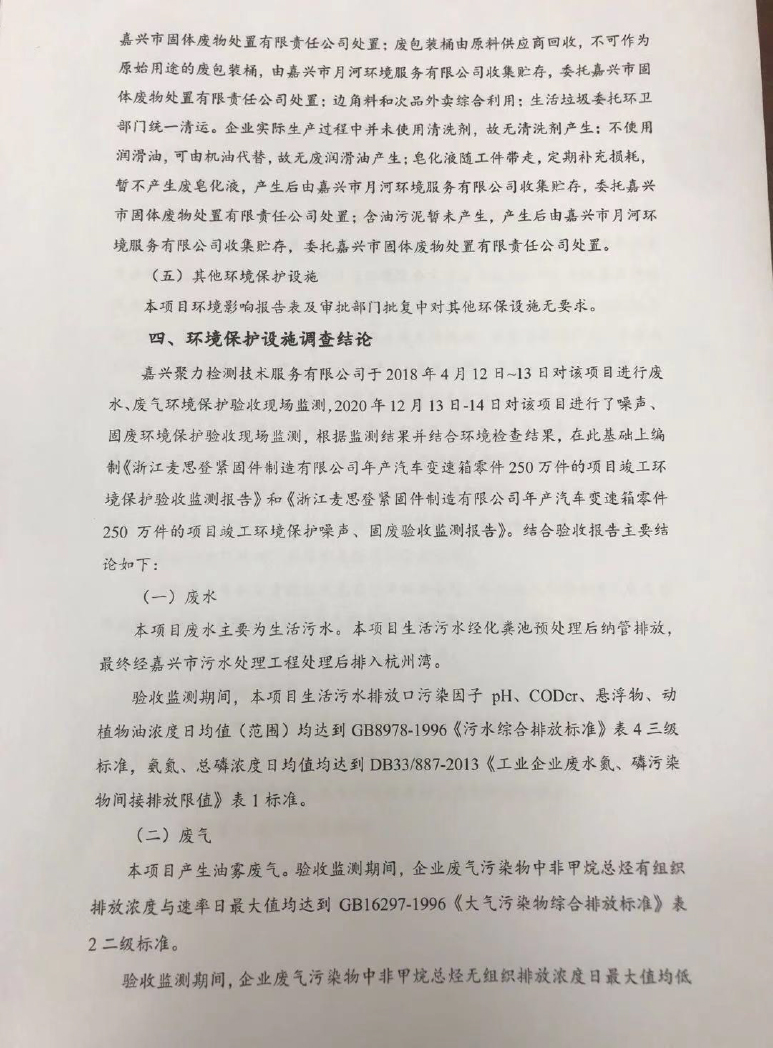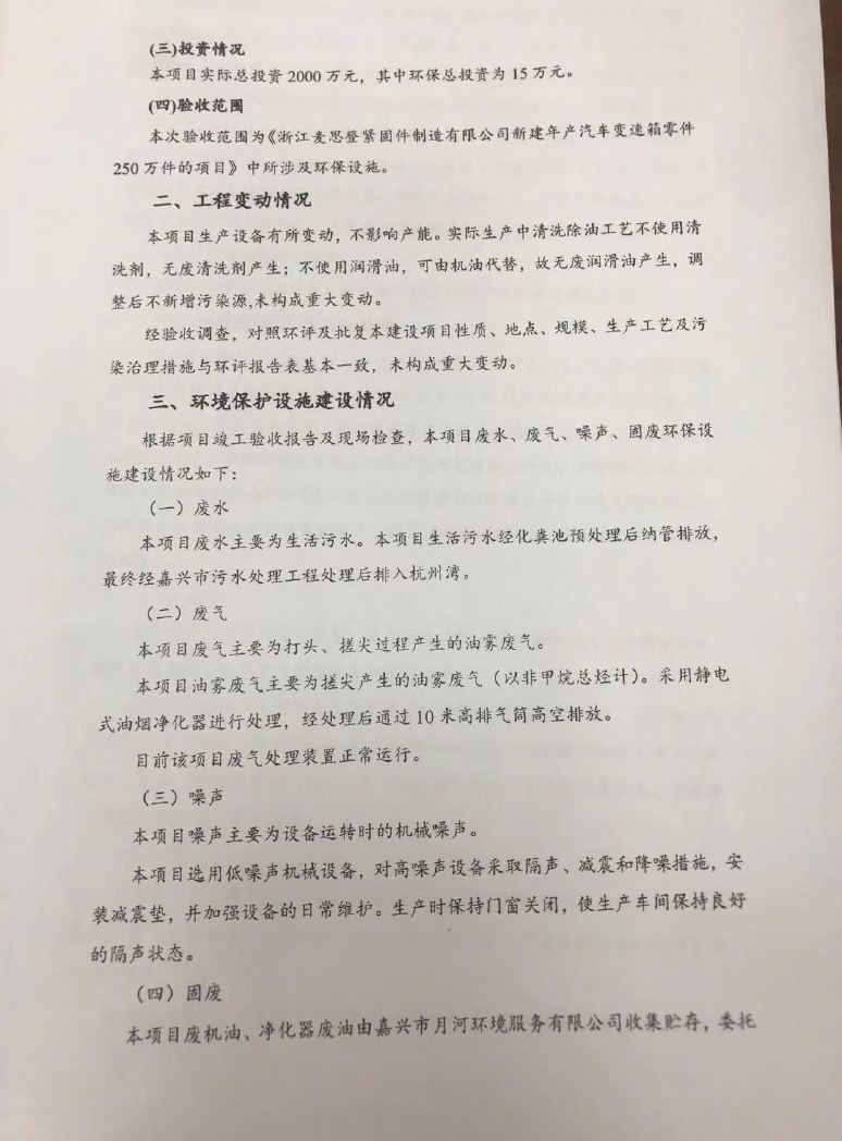 上篇: 嘉善東潤緊固件股份有限公司年產(chǎn)8.8級以上緊固件4000噸技改項(xiàng)目竣工環(huán)境保護(hù)固廢驗(yàn)收意見