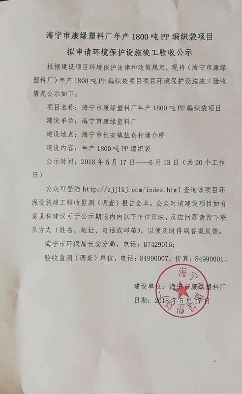 康綠驗(yàn)收監(jiān)測(cè)(自主)公示稿
