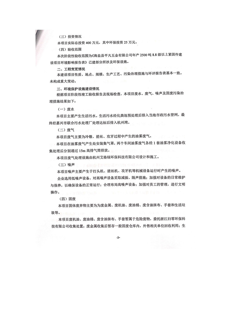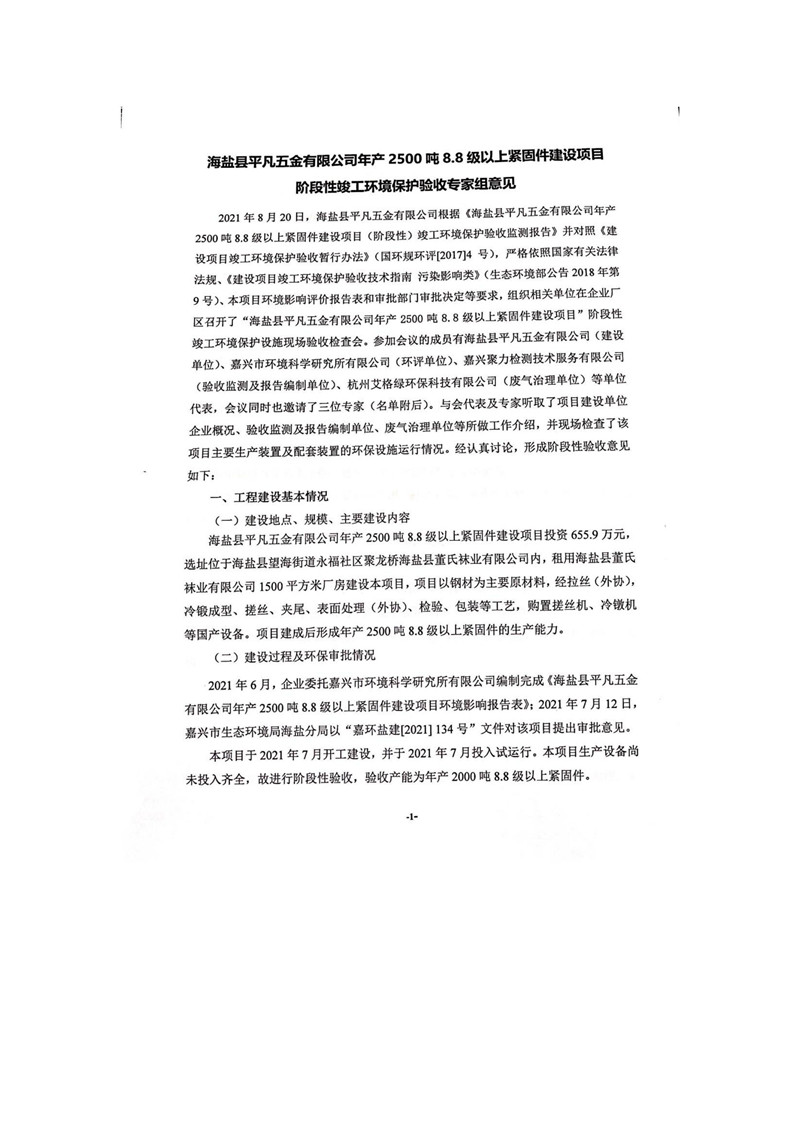 下篇: 海鹽永捷科技股份有限公司年產(chǎn)6000噸8.8級及以上緊固件建設(shè)項目階段性竣工環(huán)境保護驗收專家組意見