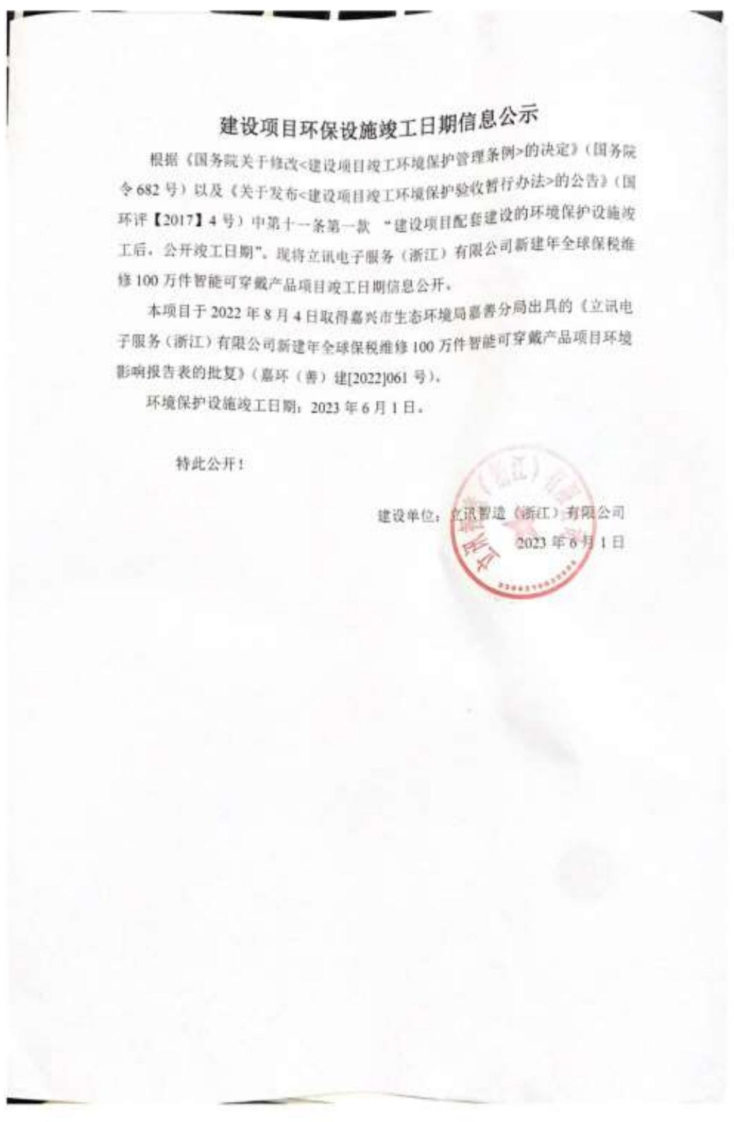 上篇: 立訊電子服務(wù)(浙江)有限公司新建年全球保稅維修100萬件智能可穿戴產(chǎn)品項(xiàng)目調(diào)試日期公示