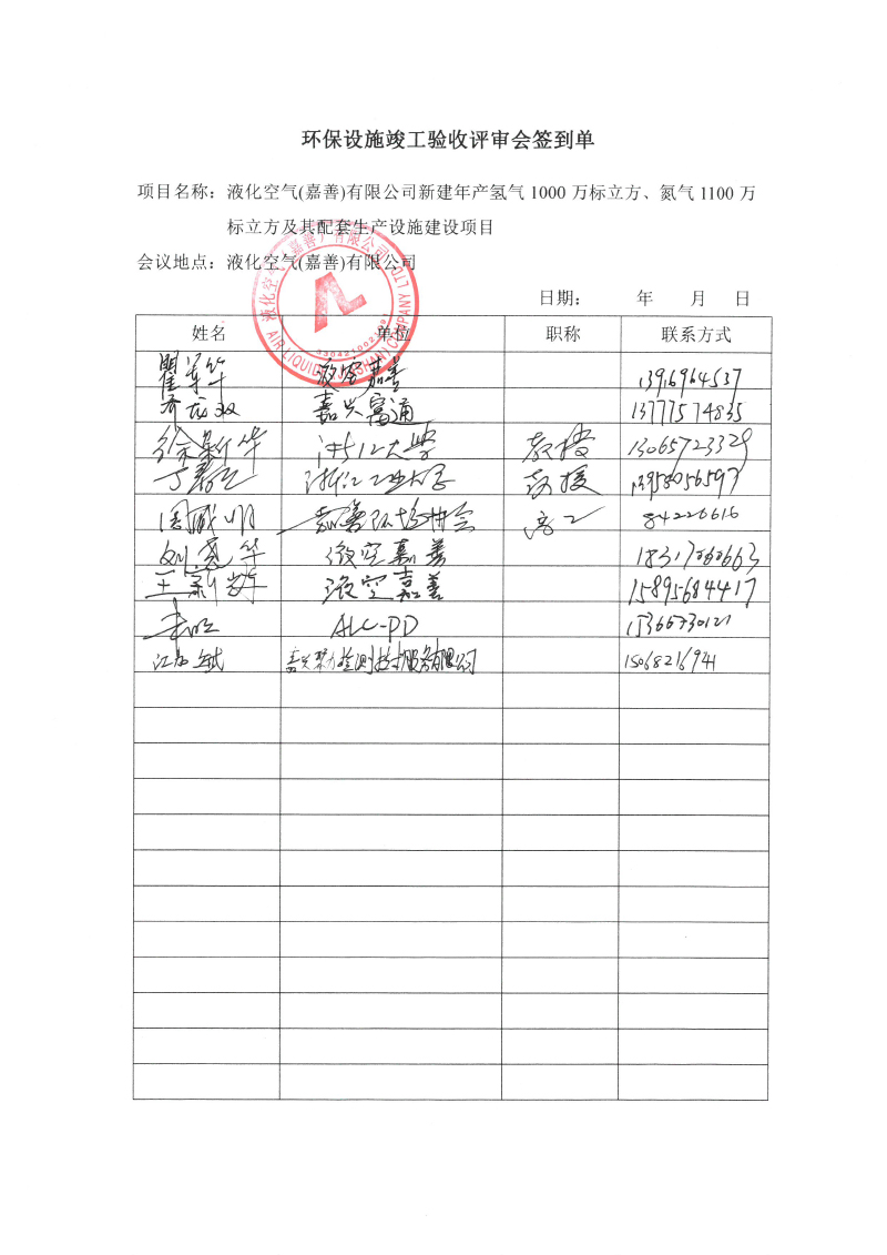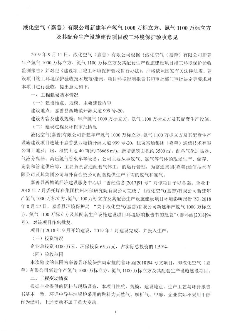 附件1:液化空氣(嘉善)有限公司新建年產(chǎn)氫氣1000萬標(biāo)立方、氮?dú)?100萬標(biāo)立方及其配套生產(chǎn)設(shè)施建設(shè)項(xiàng)目竣工環(huán)境保護(hù)驗(yàn)收監(jiān)測報(bào)告