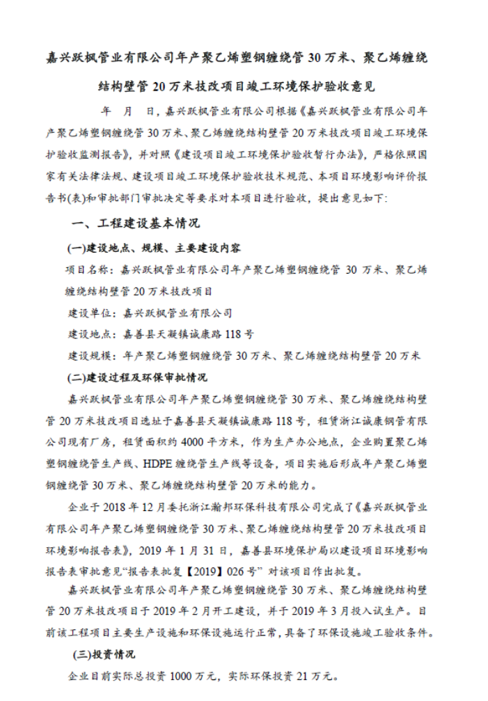 附件1:嘉興躍楓管業(yè)有限公司年產(chǎn)聚乙烯塑鋼纏繞管30萬米、聚乙烯纏繞結(jié)構(gòu)壁管20萬米技改項(xiàng)目