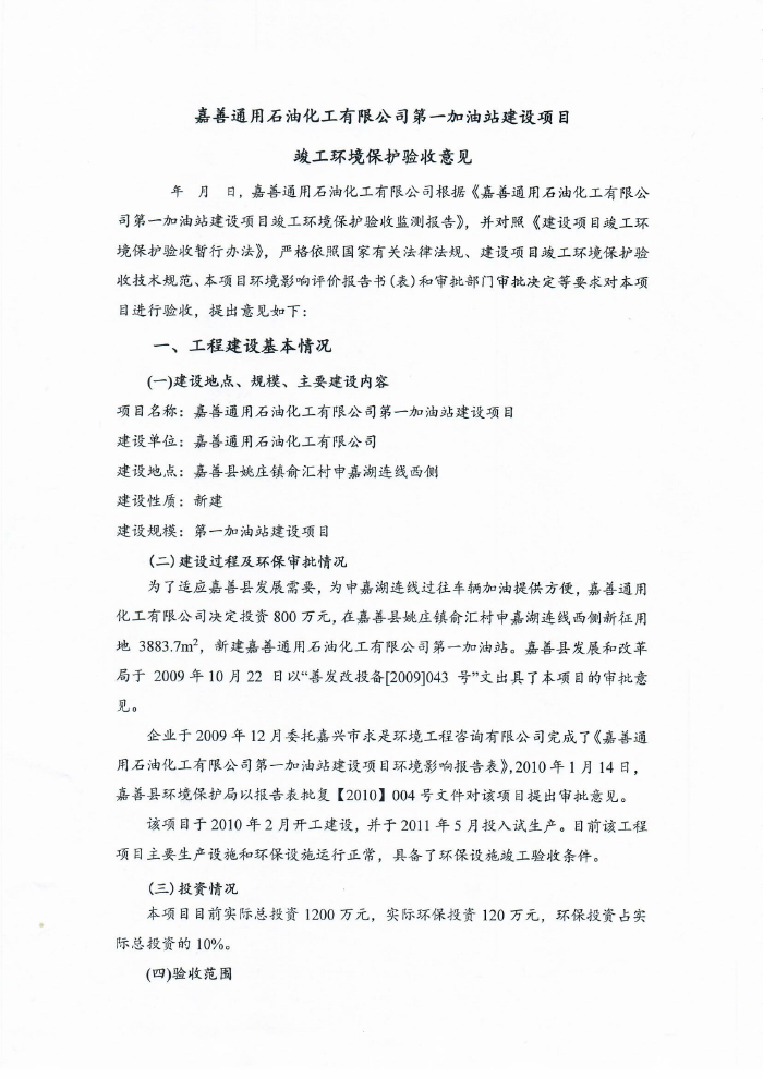 附件下載:嘉善通用石油化工有限公司第一加油站建設(shè)項(xiàng)目