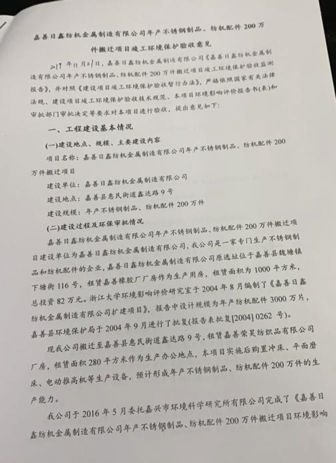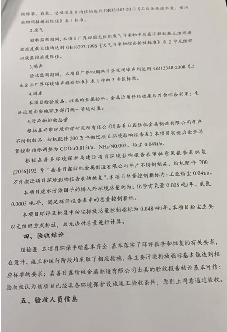 下載地址:嘉善日鑫紡機(jī)金屬制造有限公司年產(chǎn)不銹鋼制品、紡機(jī)配件200萬(wàn)件搬遷項(xiàng)目竣工環(huán)境保護(hù)驗(yàn)收監(jiān)測(cè)報(bào)告