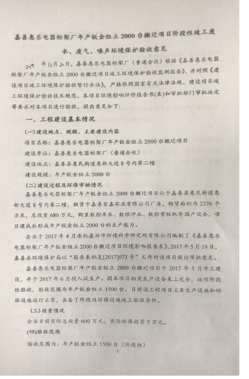 附件下載:嘉善惠樂電器柜架廠年產鈑金組立2000臺搬遷項目階段性竣驗收報告