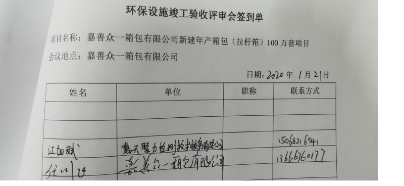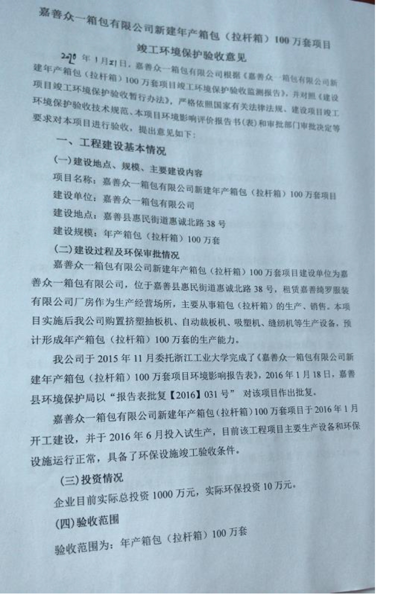 附件下載:嘉善眾一箱包有限公司新建年產(chǎn)箱包(拉桿箱)100萬套項目竣工環(huán)境保護(hù)驗收監(jiān)測報告