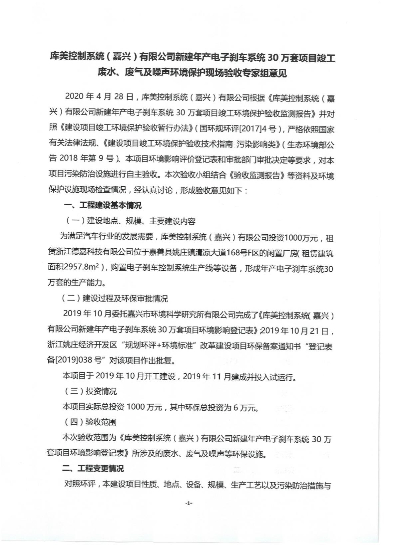 附件下載:庫美控制系統(tǒng)(嘉興)有限公司新建年產(chǎn)電子剎車系統(tǒng)30萬套項(xiàng)目驗(yàn)收?qǐng)?bào)告