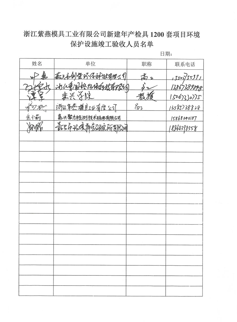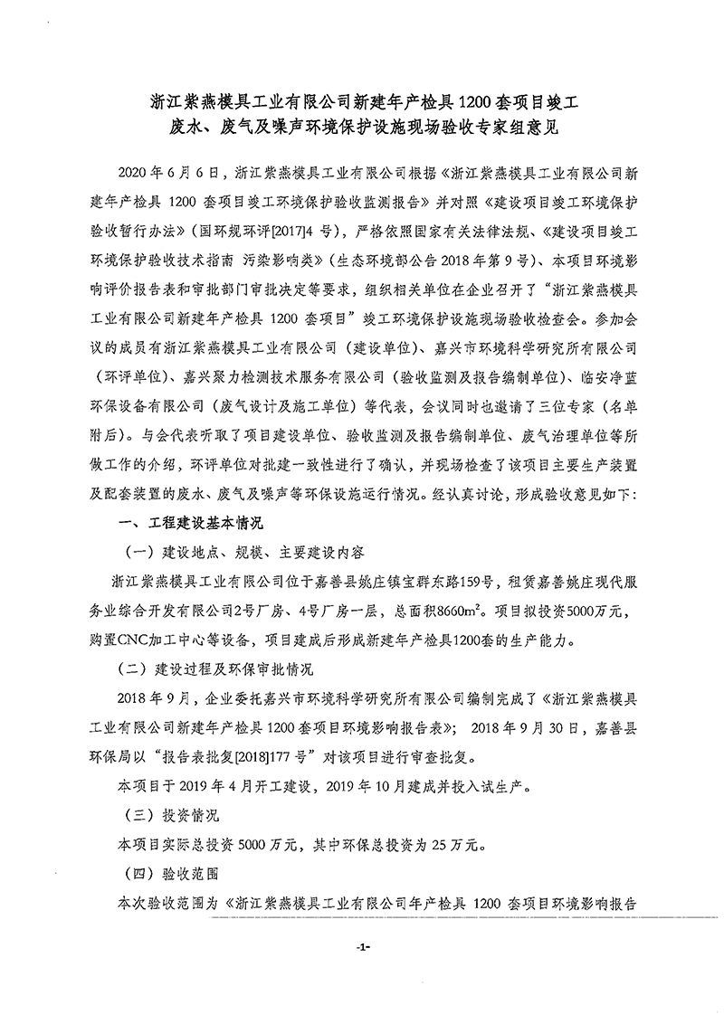浙江紫燕模具工業(yè)有限公司新建年產(chǎn)檢具1200套項目竣工環(huán)境保護驗收意見