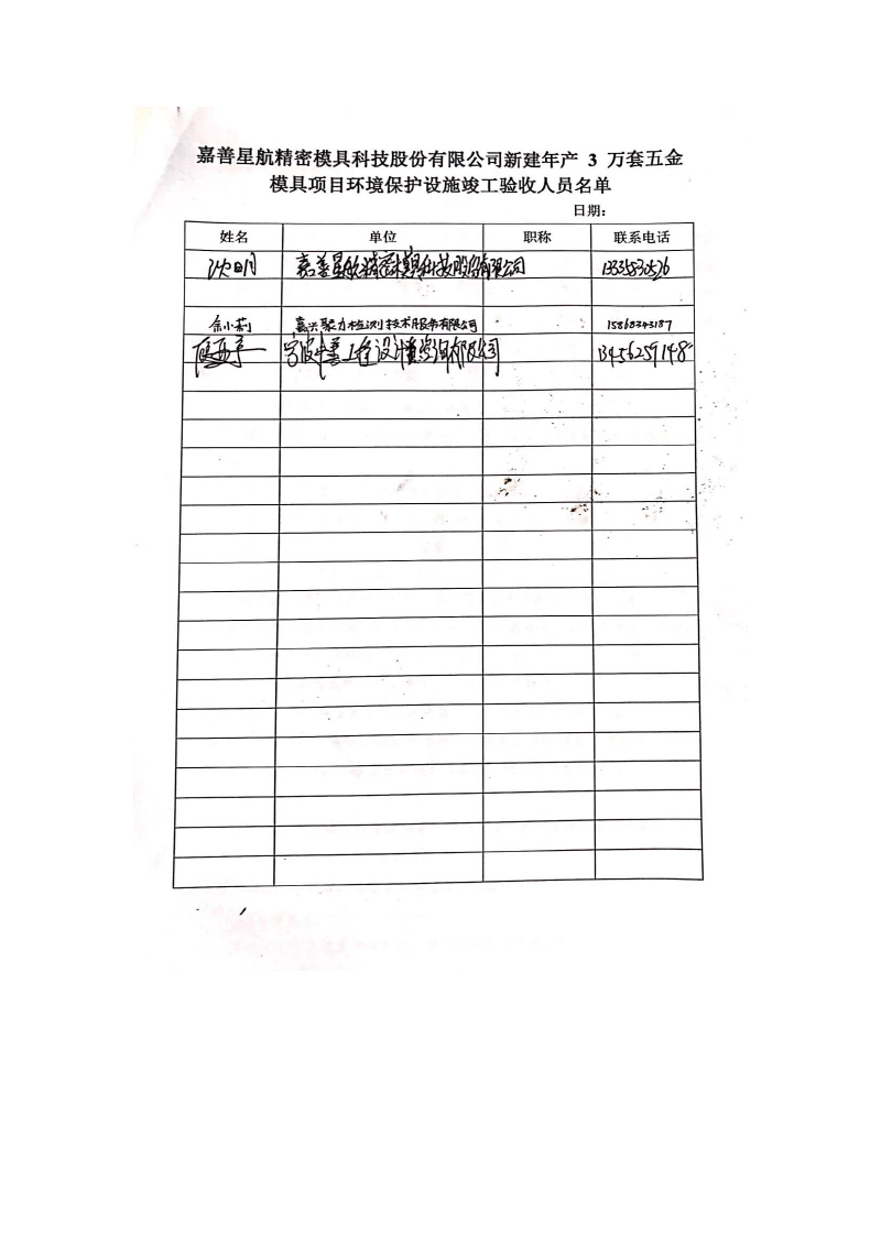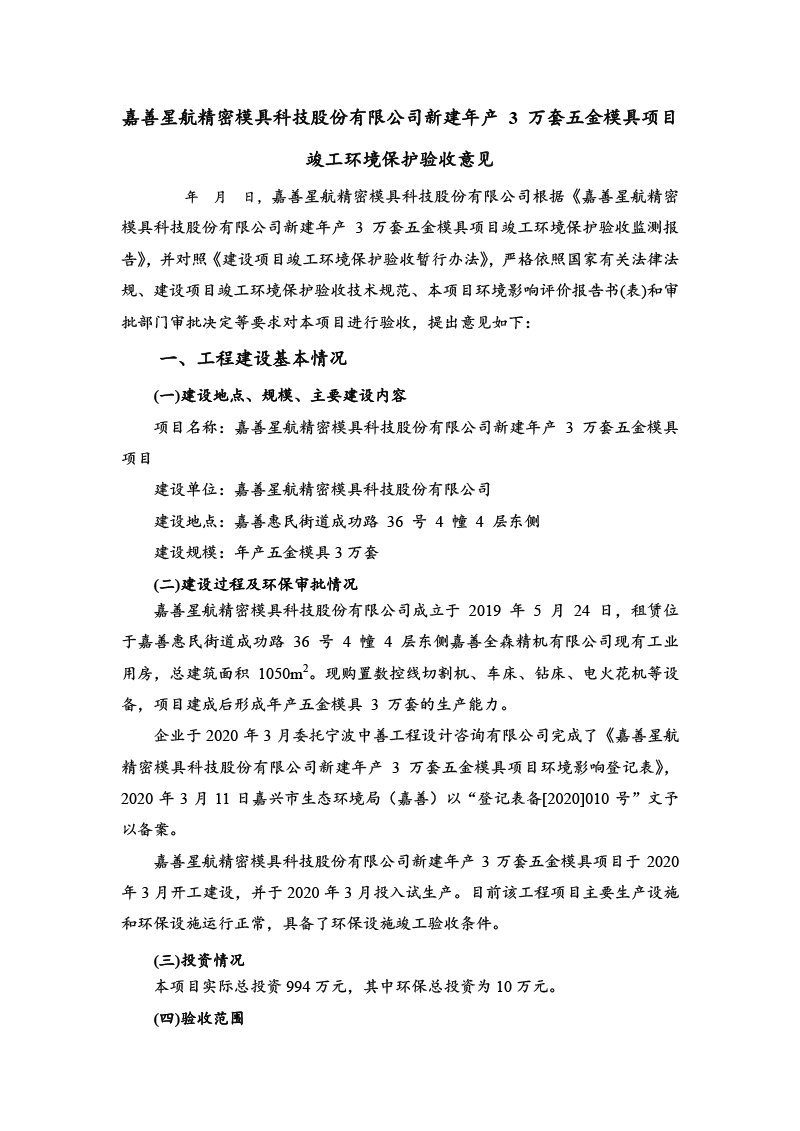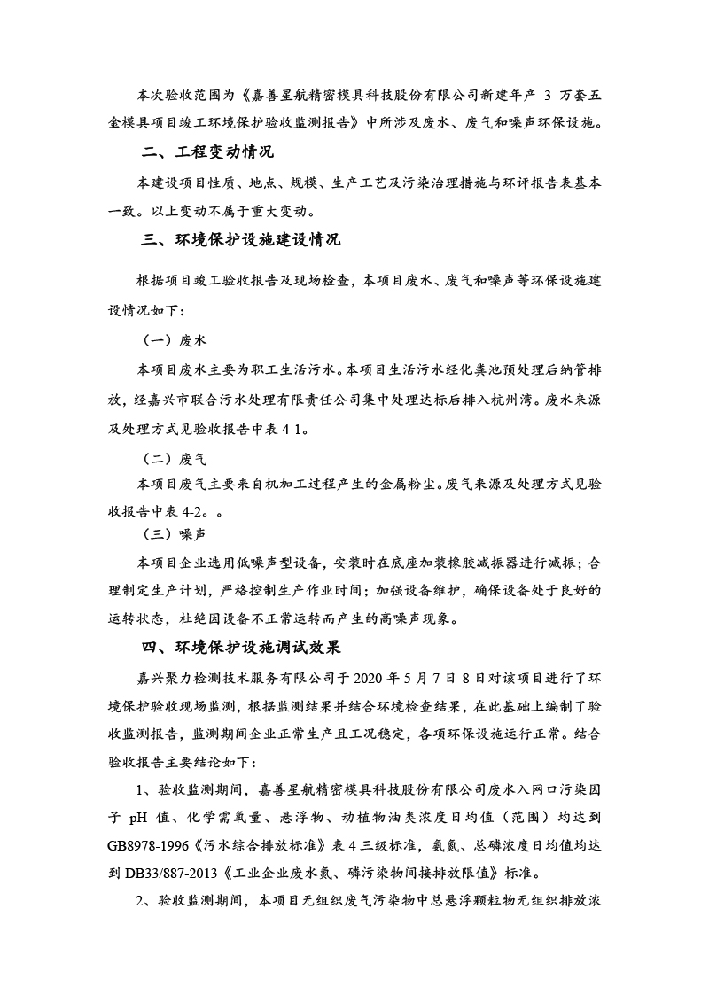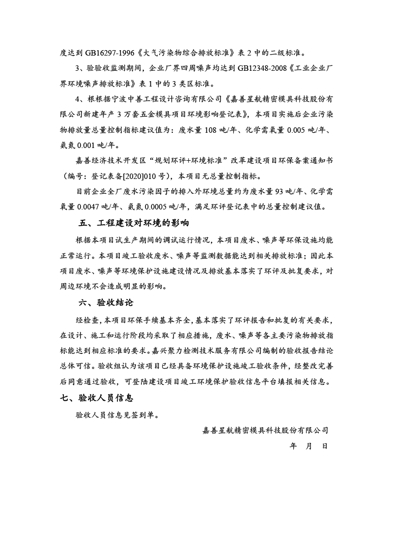嘉善星航精密模具科技股份有限公司新建年產(chǎn).3萬套五金模具項目竣工環(huán)境保護驗收監(jiān)測報告