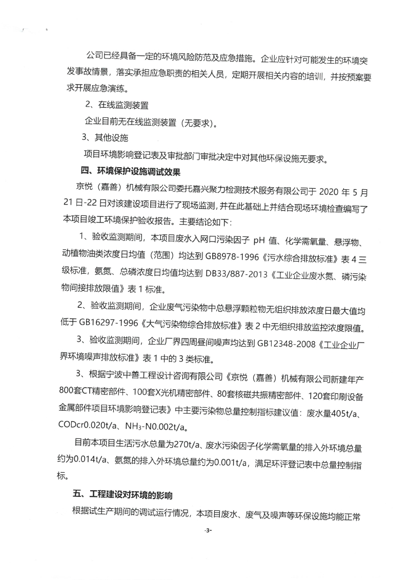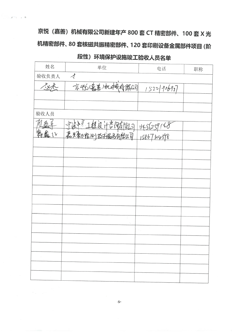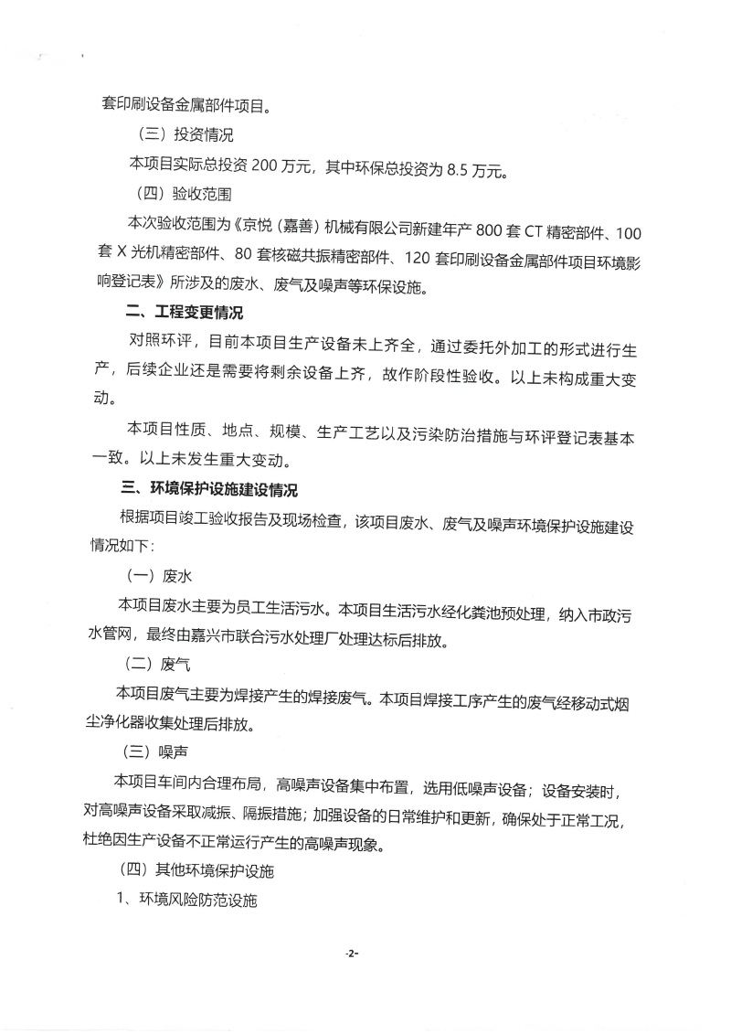 附件下載:京悅(嘉善)機(jī)械有限公司新建年產(chǎn)800套CT精密部件、100套X光機(jī)精密部件、80套核磁共振精密部件、120套印刷設(shè)備金屬部件項(xiàng)目(階段性)驗(yàn)收?qǐng)?bào)告