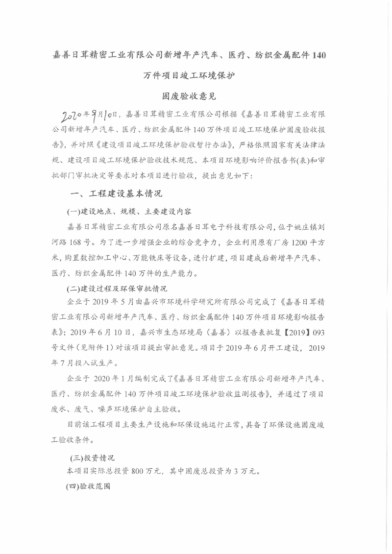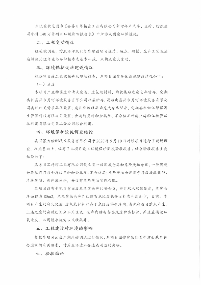 上篇: 嘉興羅杰復(fù)合面料有限公司新建項目(階段性)竣工環(huán)境保護(hù)固廢驗(yàn)收意見