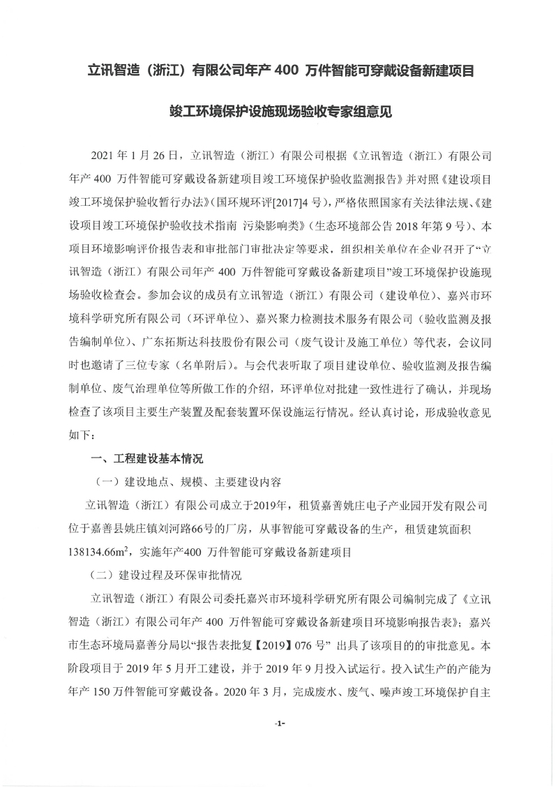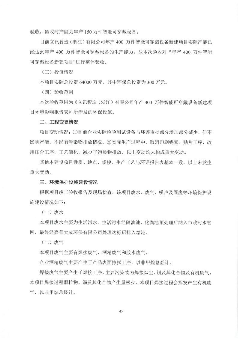 下篇: 立訊智造(浙江)有限公司年產(chǎn)700 萬(wàn)件智能可穿戴設(shè)備技改項(xiàng)目竣工驗(yàn)收意見(jiàn)