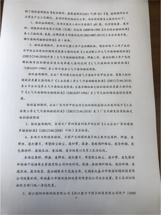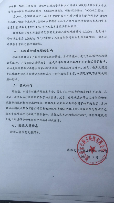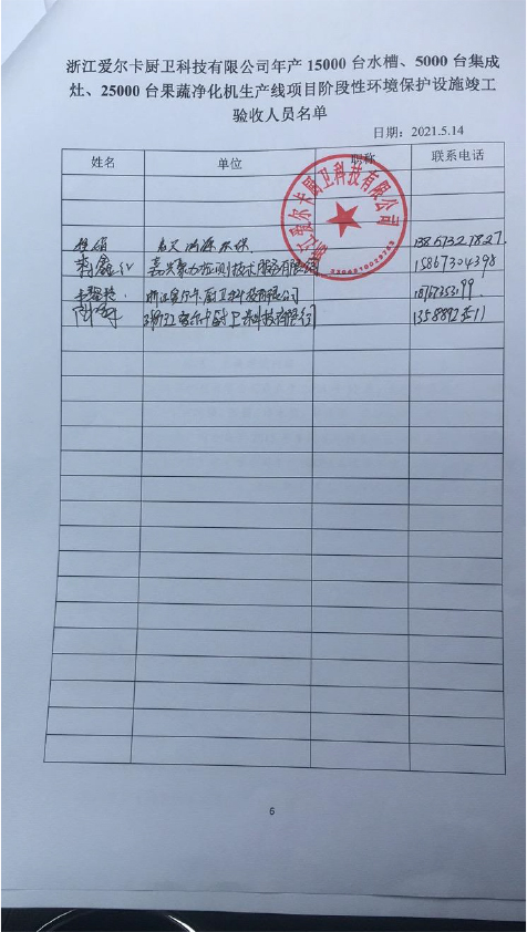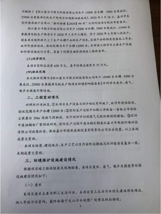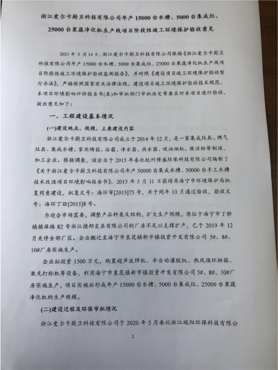 附件下載:浙江愛爾卡廚衛(wèi)科技有限公司年產(chǎn)15000臺(tái)水槽、5000臺(tái)集成灶、25000臺(tái)果蔬凈化機(jī)生產(chǎn)線項(xiàng)目階段性驗(yàn)收?qǐng)?bào)告.pdf