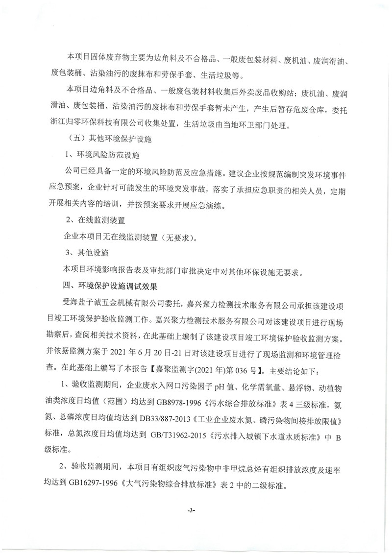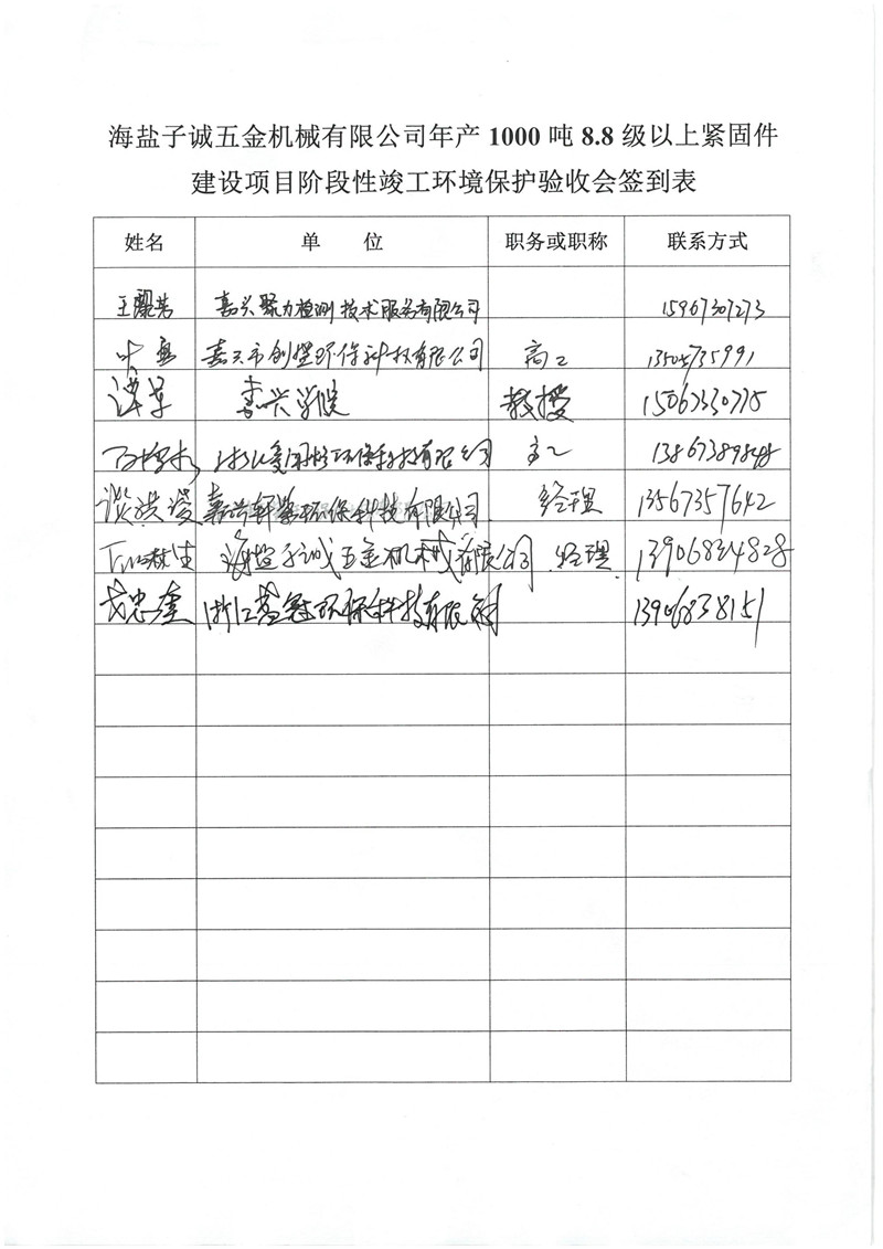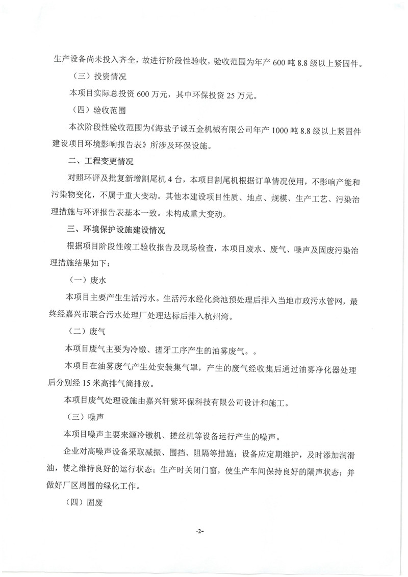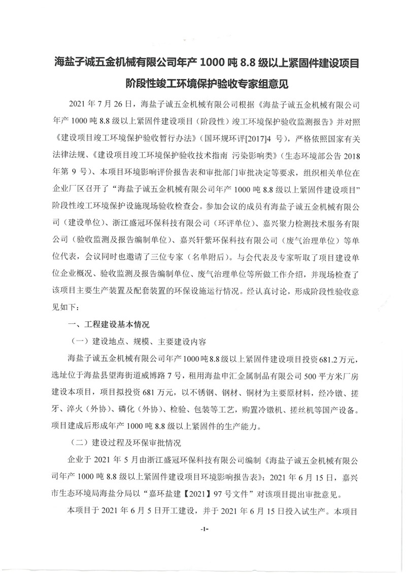 附件下載:海鹽子誠五金機(jī)械有限公司年產(chǎn)1000噸8.8級以上緊固件建設(shè)項(xiàng)目竣工環(huán)境保護(hù)驗(yàn)收報(bào)告.pdf