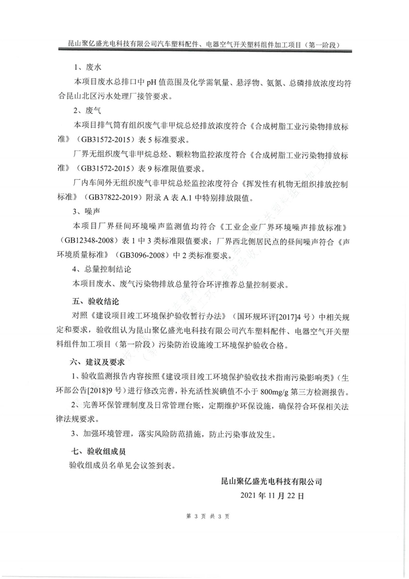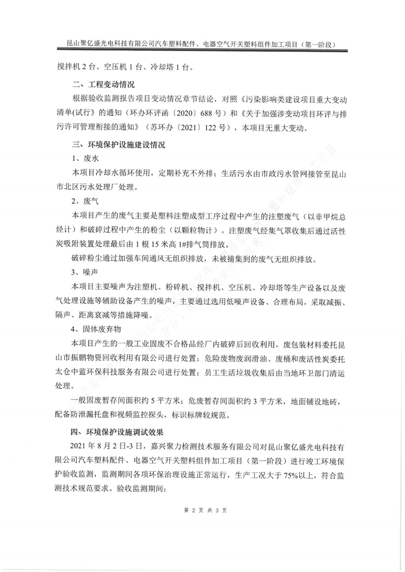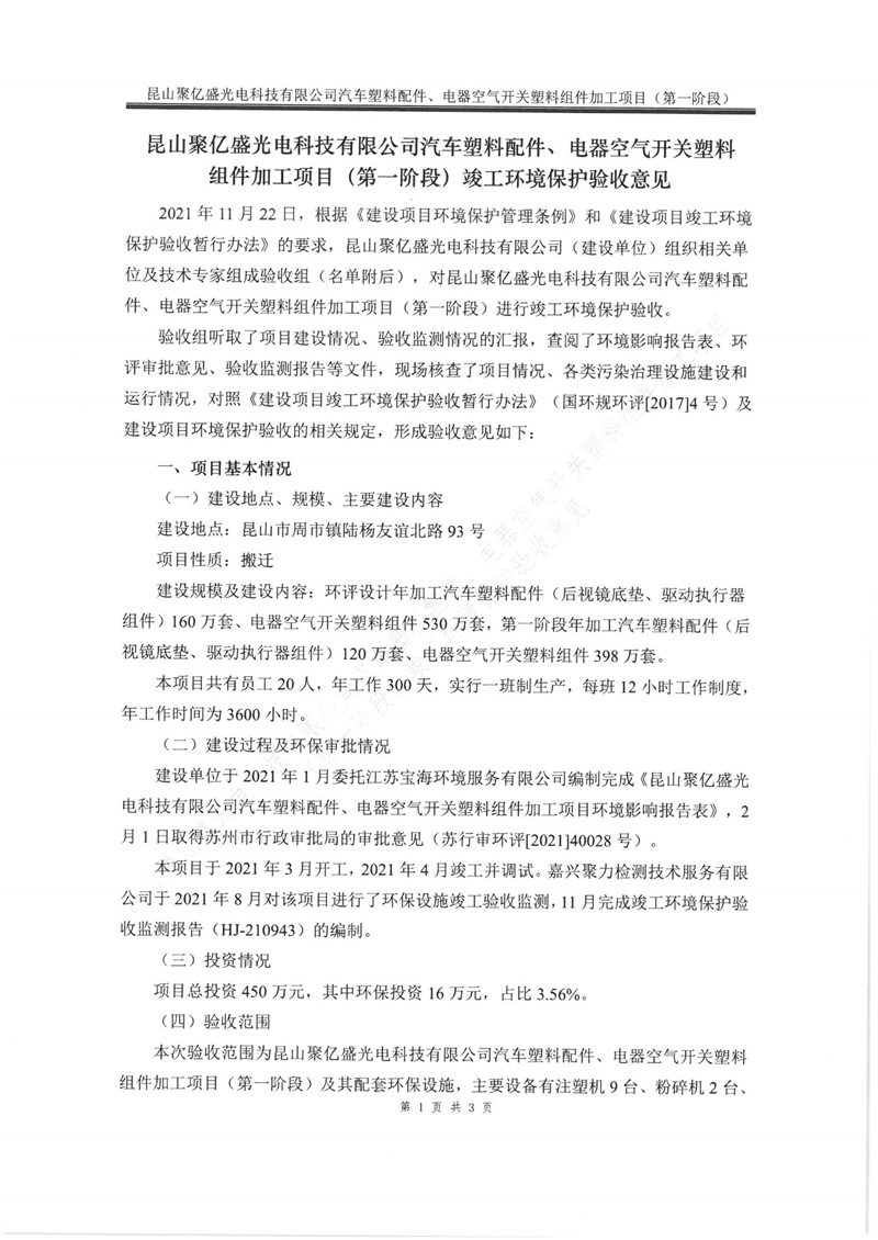 附件下載:昆山聚億盛光電科技有限公司汽車塑料配件、電器空氣開關(guān)塑料組件加工項(xiàng)目(第一階段)自主驗(yàn)收.pdf