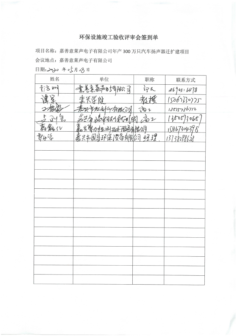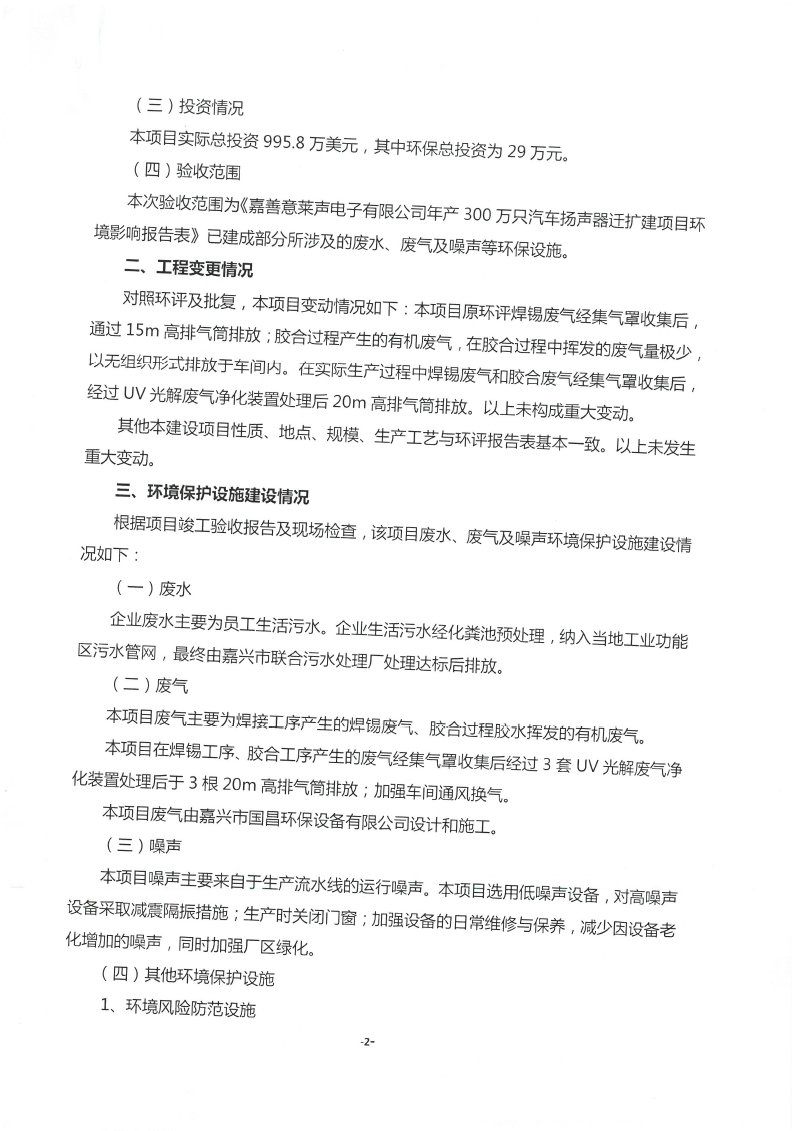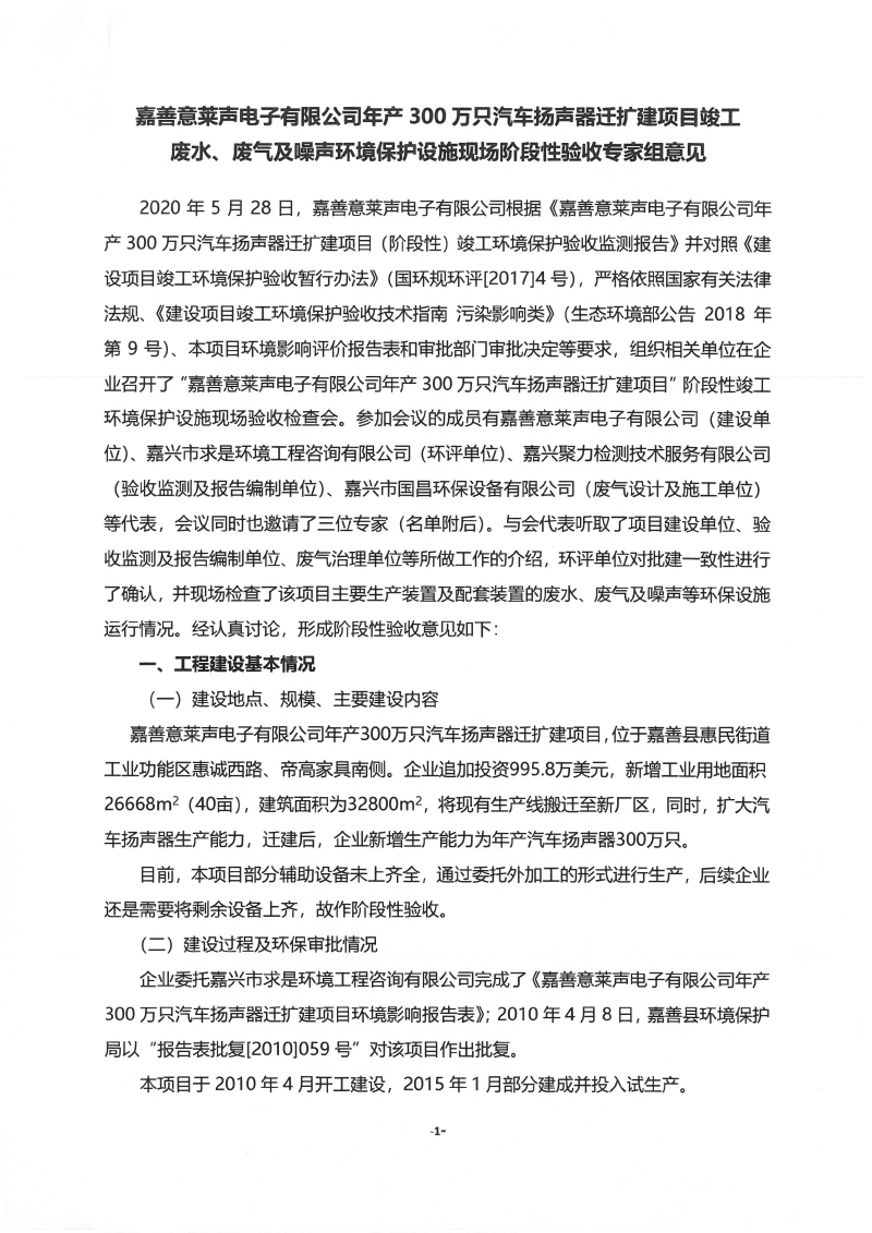 附件下載:嘉善意萊聲電子有限公司年產300萬只汽車揚聲器遷擴建項目驗收報告